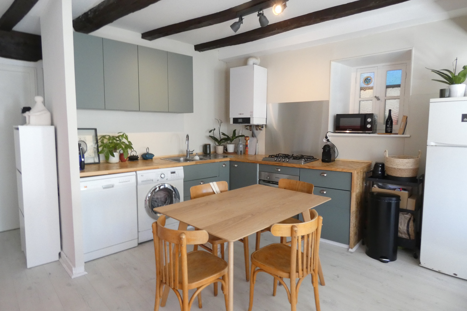 A vendre, Finistère, Morlaix, en exclusivité agence, appartement rénové avec jardin privatif en hyper-centre. Empruntez les escaliers de cette petite copropriété sécurisée et accédez au 3ème étage à ce lieu atypique, de caractère, avec poutres apparentes. Il est composé d'une cuisine aménagée et équipée ouverte sur la pièce de vie donnant sur l'une des places les plus commerçantes de la ville, deux chambres à l'arrière, une salle de bains, et des toilettes. Profitez d'un jardin au coeur de la ville, avec vue imprenable sur le viaduc, exposé sud. Gare accessible à pied. Rare sur le marché.