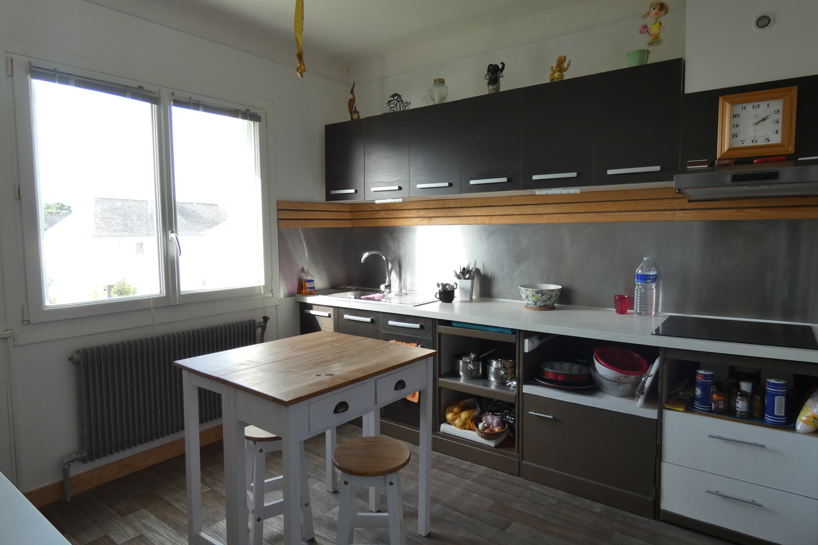 A vendre Morlaix Finistère, en EXCLUSIVITÉ, maison sur cave des années 50 rénovée, dans un quartier pavillonnaire calme, à proximité des commerces, de toutes les commodités et de l'accès à la N12. Venez découvrir cette maison sur planchers d'origine, composée au rez-de-chaussée surélevé d'une pièce de vie double, une cuisine aménagée et équipée, une chambre et une salle d'eau avec toilettes. Une vaste chambre de 30 m² divisible en deux occupe l'étage supérieur. Le sous-sol propose un beau volume pour un atelier en rez-de-jardin, avec cellier/buanderie et chaufferie, Terrain clos de 377 m² et stationnement facile. Pompe à chaleur de 2017.