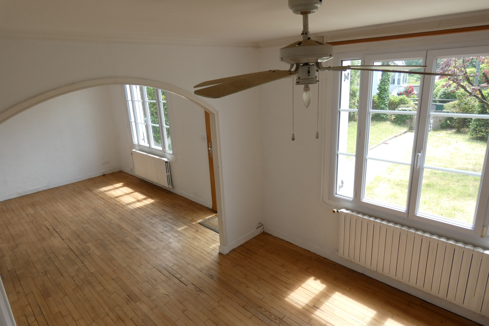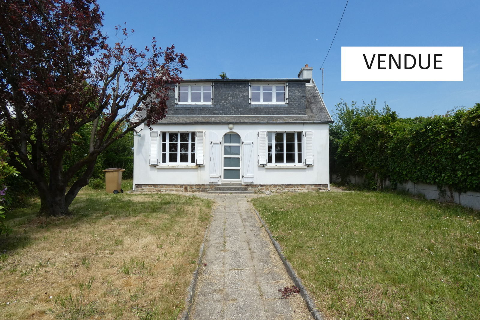 A vendre Morlaix Finistère, maison habitable de plain-pied, orientée sud, dans un quartier proche du centre-ville. Pièce de vie double ouverte sur une cuisine aménagée et équipée, dégagement donnant sur la chambre du rez-de-chaussée, salle de bains, toilettes. A l'étage, palier desservant deux chambres, une salle d'eau avec toilettes et deux petits greniers mansardés. Cellier et garage, Jardin de 440 m² et stationnement facile. Emplacement de choix à proximité des commerces et de toutes les commodités. Tombez sous le charme des années 50 avec ses parquets et une belle luminosité.