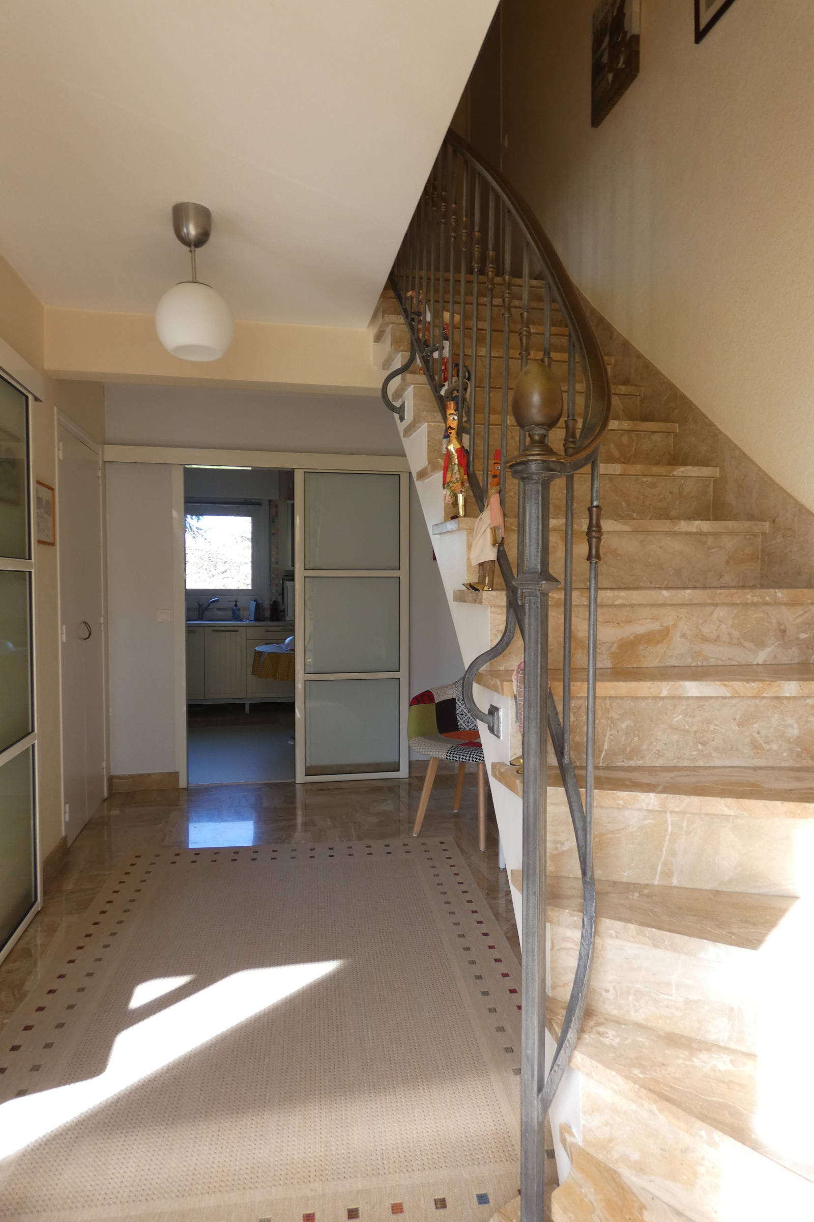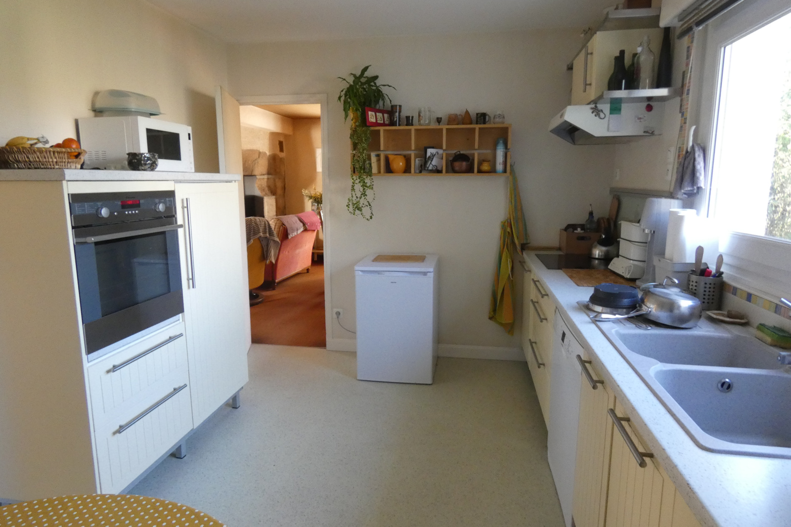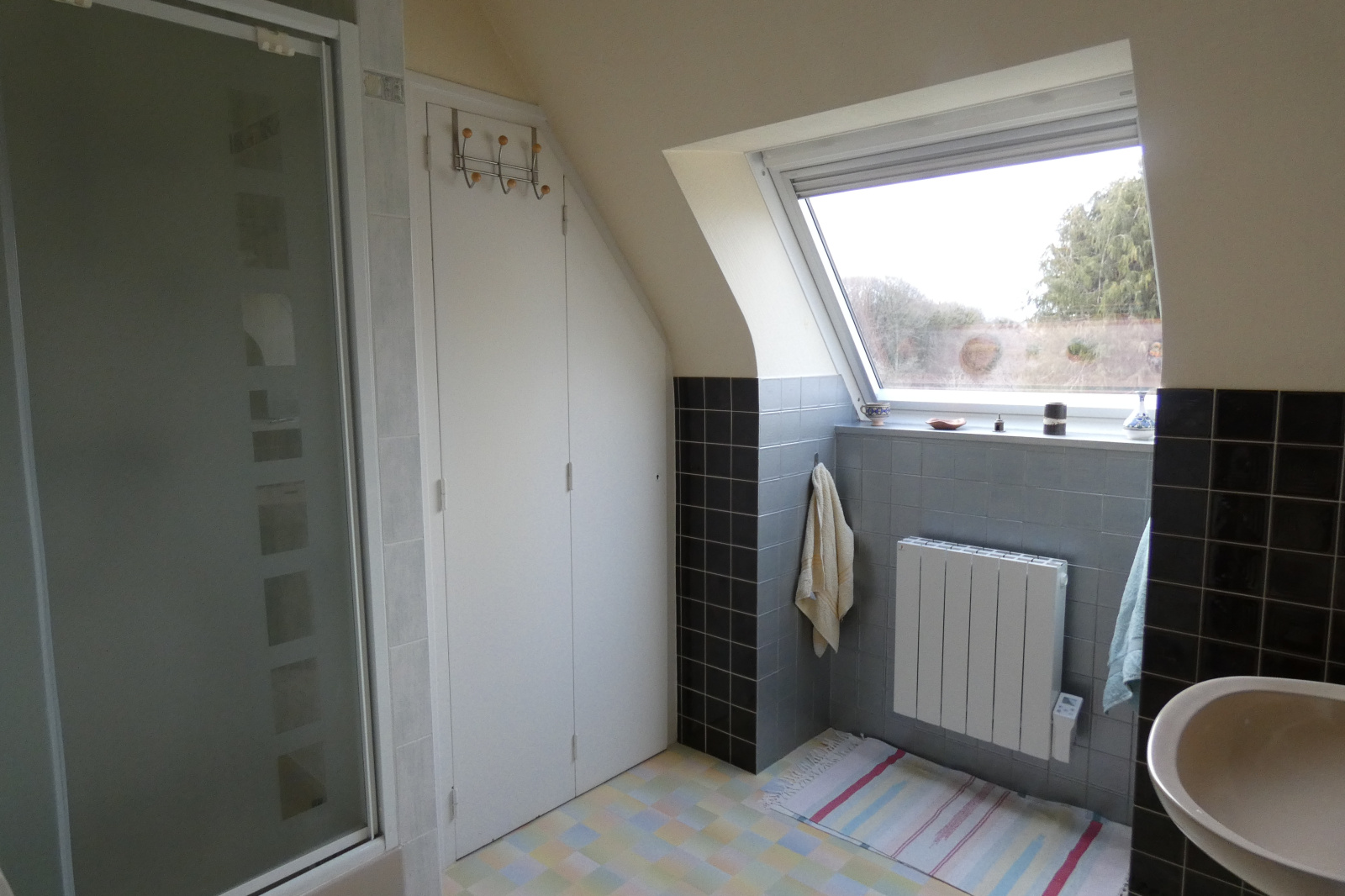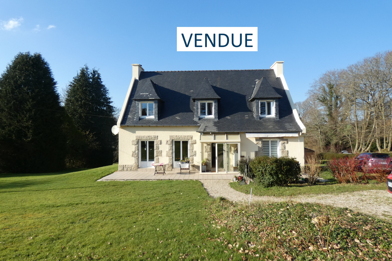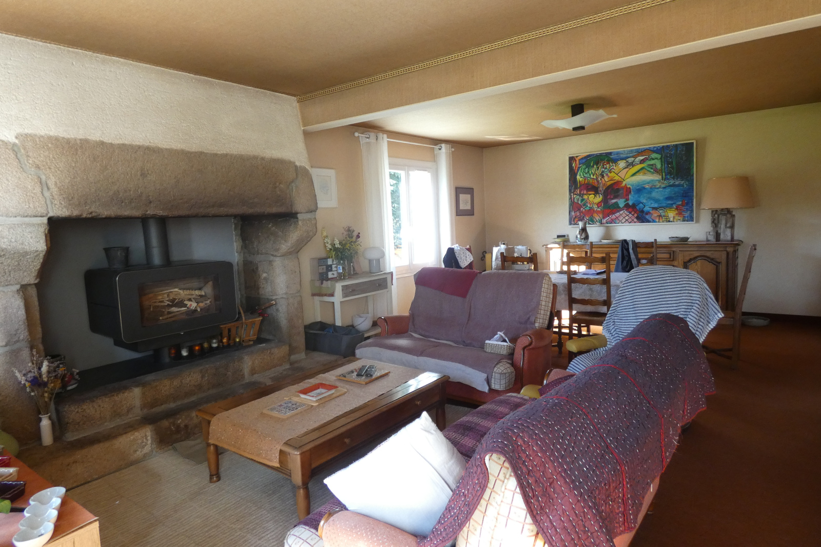 Finistère, à vendre à Plourin Les Morlaix, à la sortie du bourg, découvrez cette maison habitable de plain-pied sur 5.000 m² de jardin. Elle comprend un hall d'entrée avec vestiaire, une cuisine aménagée et équipée, une pièce de vie de 40 m², avec poele à bois installé dans la vaste cheminée d'origine, ouvrant sur une terrasse orientée sud, une chambre, une salle d'eau, des toilettes, un cellier avec accès sur une deuxième terrasse à l'arrière. A l'étage, un couloir distribue trois chambres, un bureau ou cinquième chambre, une salle d'eau, des toilettes et une salle de jeux. Garage, cave et abri de jardin complètent ce bien. Espace extérieur et volumes intérieurs en feront une agréable maison de famille.