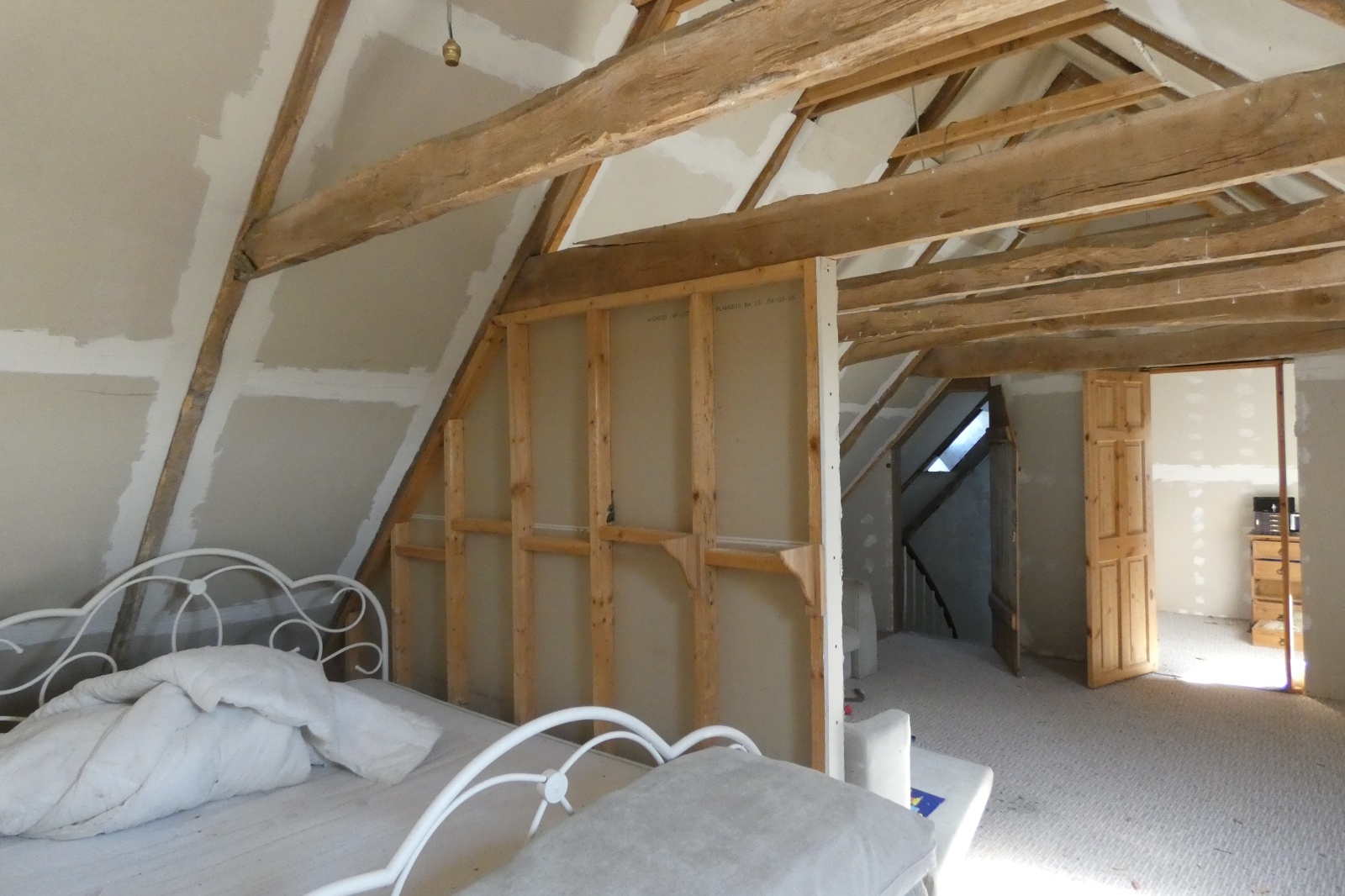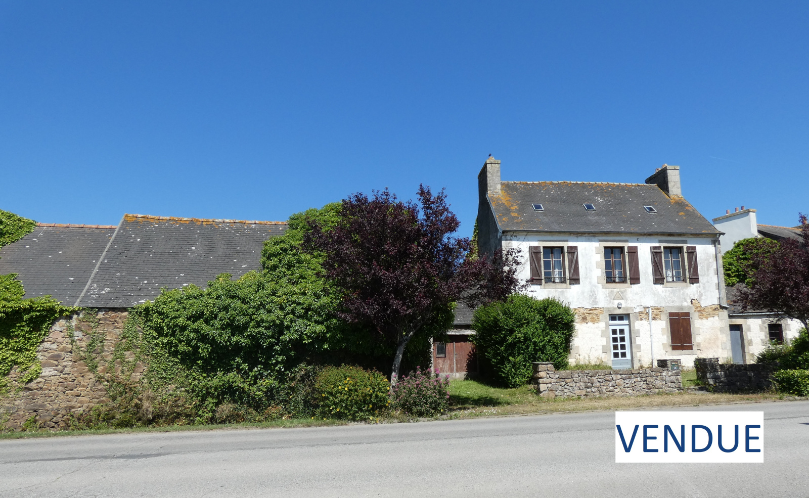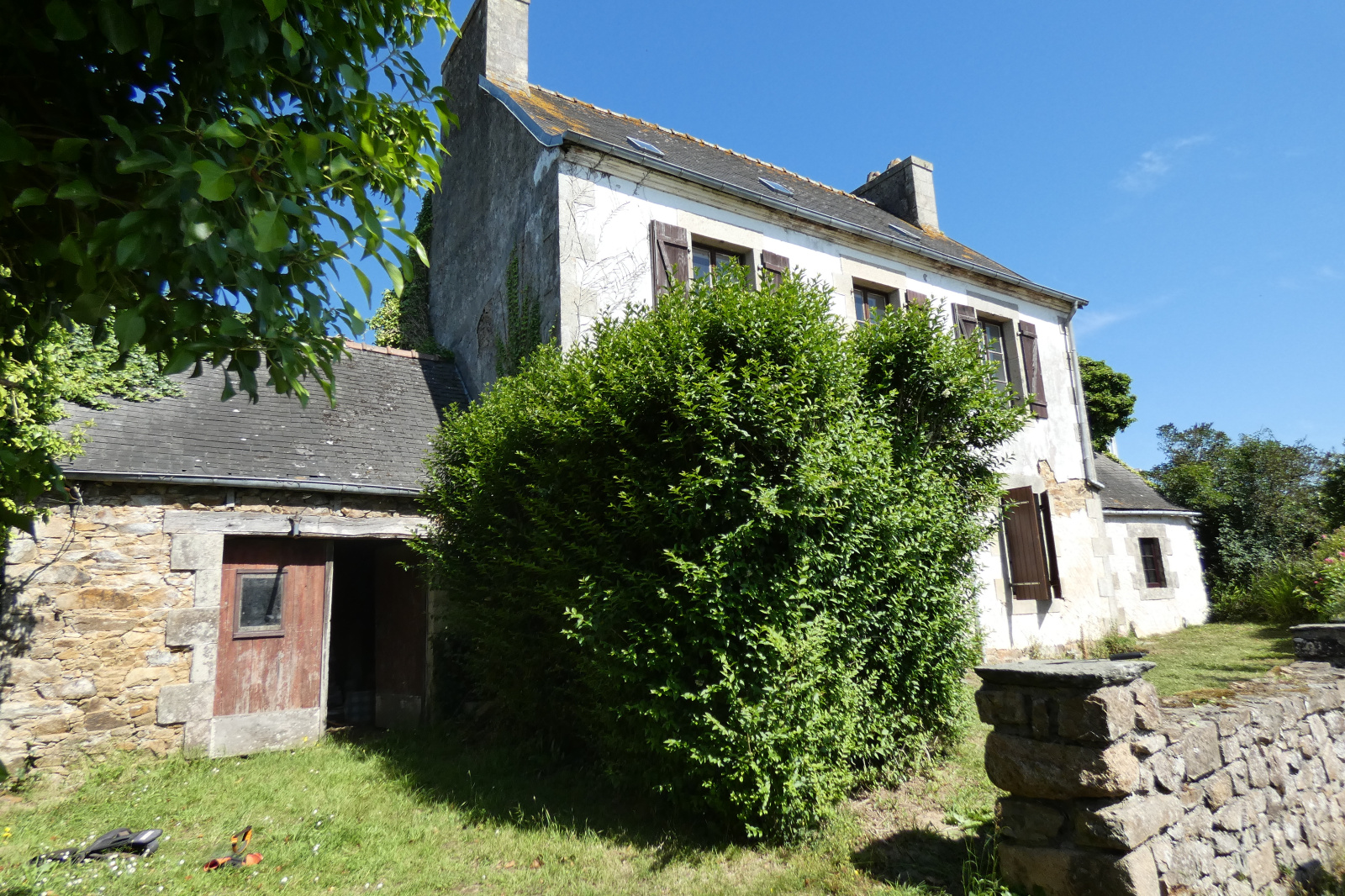 Finistère, Pays de Morlaix, Lanmeur, à vendre en exclusivité maison en pierre et dépendances, l'ensemble à terminer de rénover, proche de toutes les commodités. Elle comprend au rez-de-chaussée une entrée, salon, salle-à-manger, cuisine, toilettes et deux étages composés de trois chambres, un bureau ou dressing et une salle d'eau avec toilettes. Une dépendance de 70m² et un atelier/bûcher de 15 m² complètent le bien, sur un terrain de 1.066 m². Mettez votre touche dans cette bâtisse exposée sud, dotée de cheminées d'époque et de belles hauteurs sous plafond.